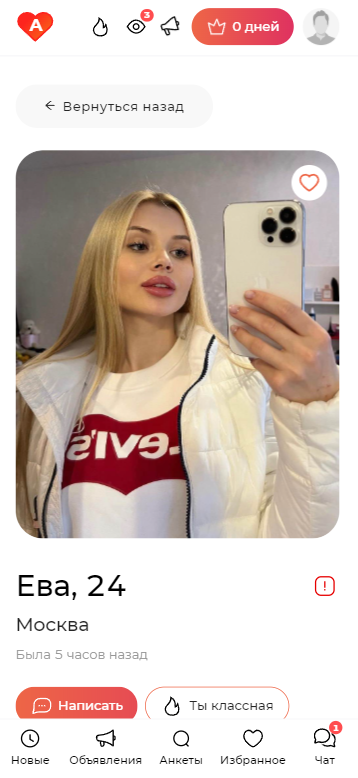 Алгоритм онлайн знакомства заключается в том, что вам демонстрируются анкеты других пользователей, а вы отмечаете симпатией понравившиеся профили. В случае взаимной симпатии появляется возможность начать общение.
