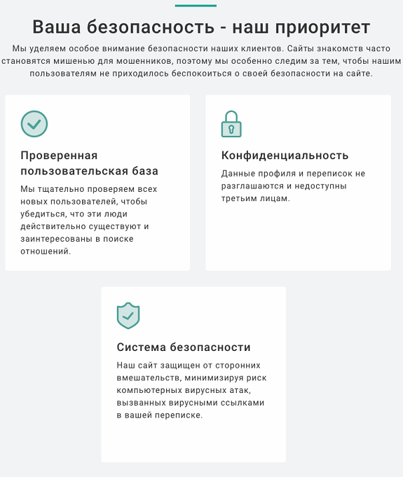 Общение на сервисе не несет никаких неприятных сюрпризов. Администрация проводит тщательную верификацию пользователей, которая подтверждает отсутствие мошенников и фейковых страниц на сайте. Для этого загруженные вами фото проверяются на уникальность. Также проверяются данные, указанные в анкете. Только после ручной модерации вы можете пользоваться сайтом. Без регистрации начать общение не получится.
