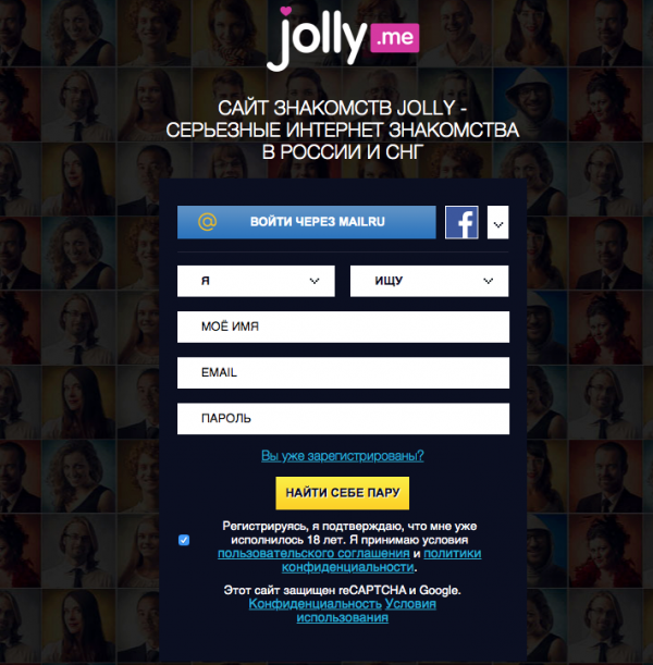 Jolly – сервис для знакомства в интернете, общения без обязательств или построения серьезных отношений. Сайт характеризуется богатым функционалом, на нем ежедневно регистрируется много пользователей. На сайте можно познакомиться с девушками или парнями любого возраста.